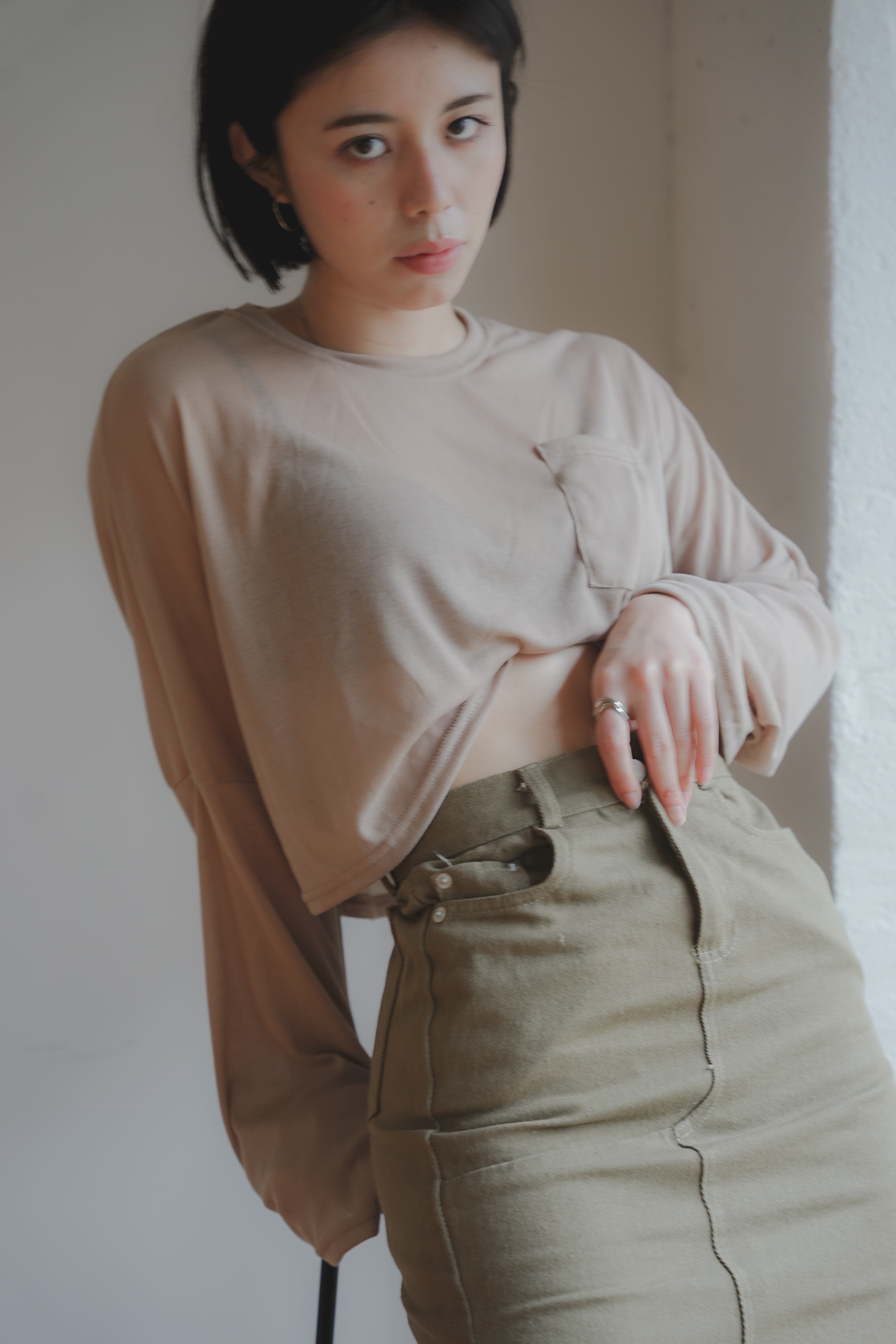 クロップド丈長袖トップス。